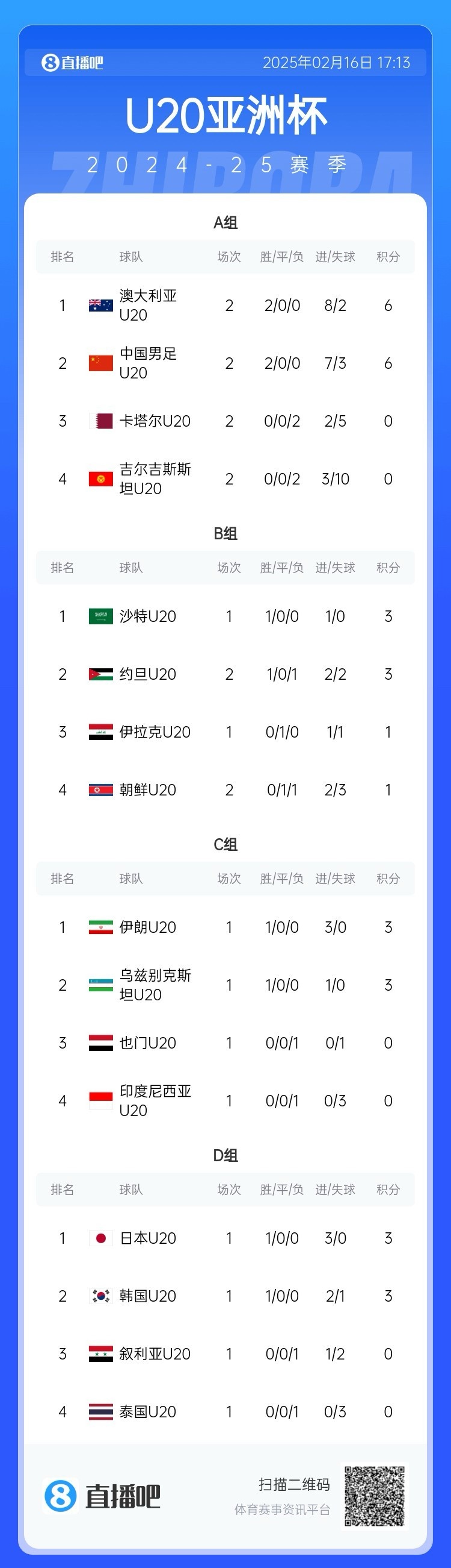 2月16日訊 北京時(shí)間今天下午進(jìn)行的U20亞洲杯B組第二輪比賽,朝鮮1-2不敵約旦,兩輪過(guò)后僅積1分。