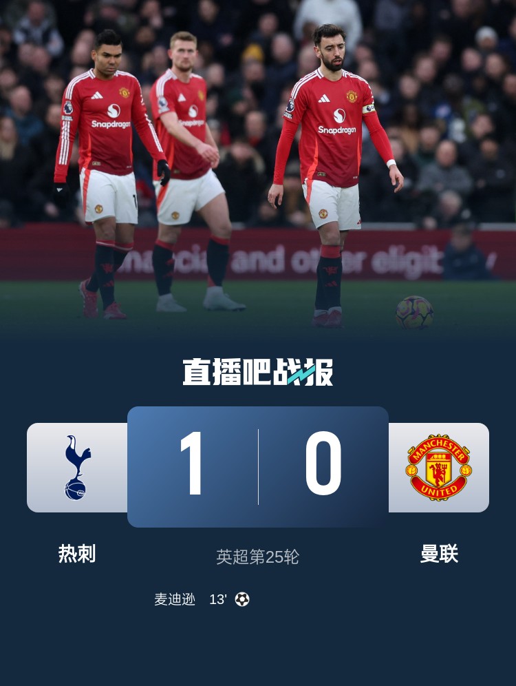 02月17日訊 英超第25輪,曼聯0-1不敵熱刺,賽季遭對手三殺。