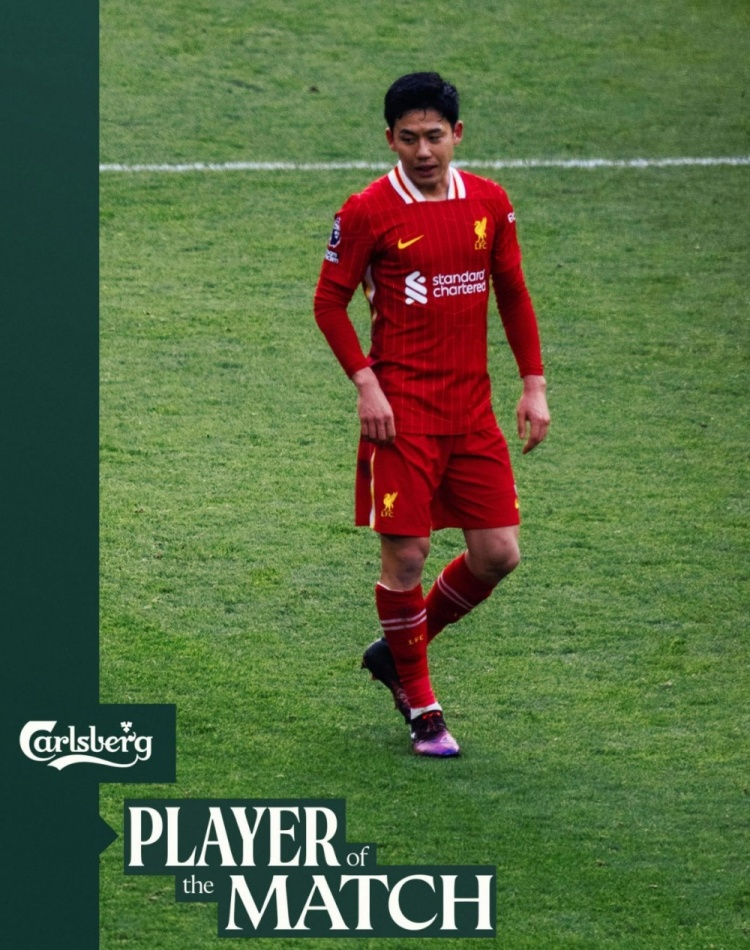 2月17日訊 英超第25輪,利物浦2-1擊敗狼隊,7分優(yōu)勢領(lǐng)跑積分榜。賽后,替補登場的遠藤航當(dāng)選了紅軍隊內(nèi)最佳球員。