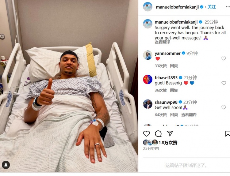 阿坎吉:“手術(shù)進行得很順利,康復(fù)之旅已經(jīng)開始,感謝你們所有祝福的信息!”